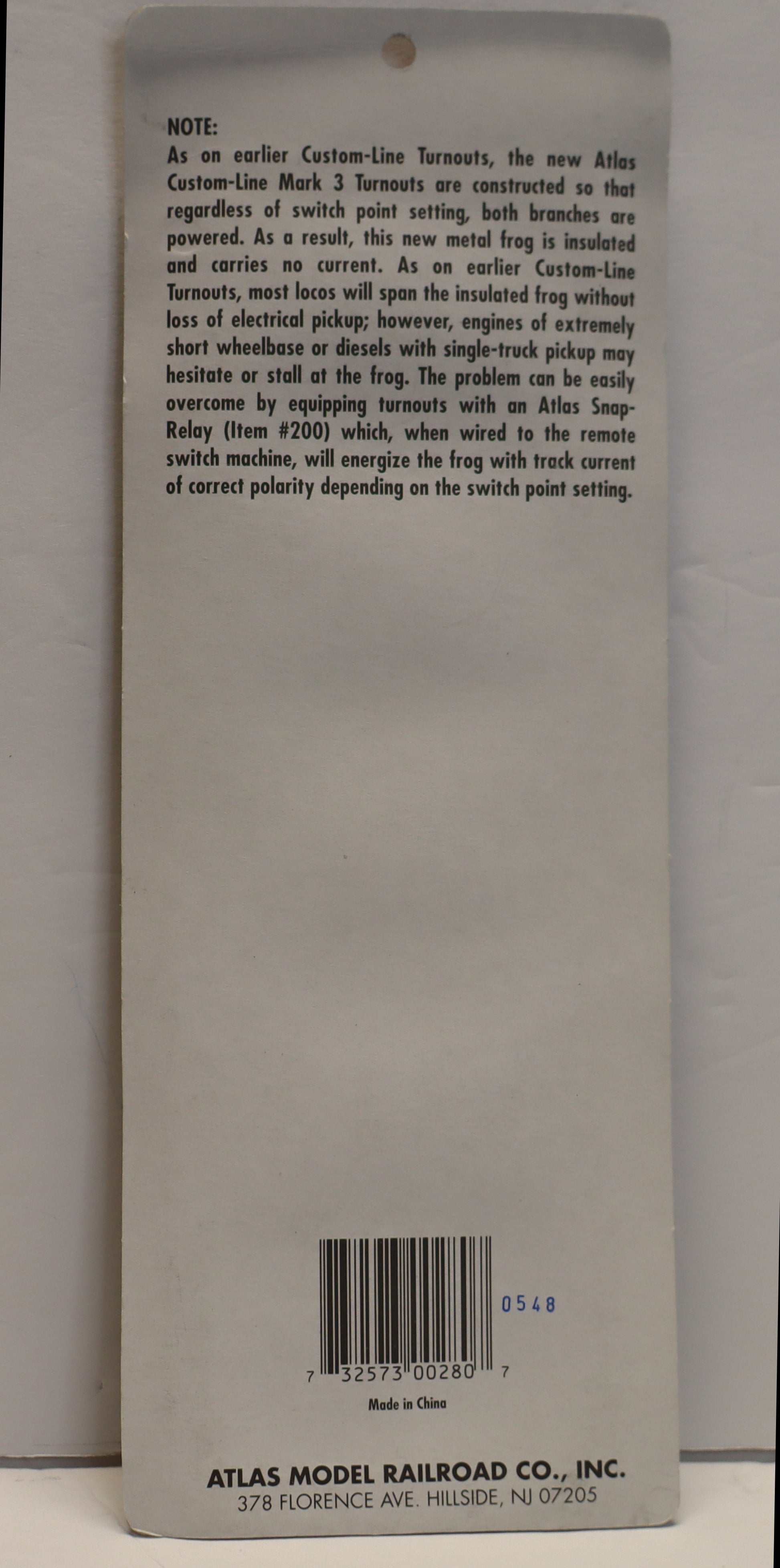 Atlas HO 280 - HO Custom-Line "Mark-3" Turnout (WYE Turnout) -Open Box-H1036