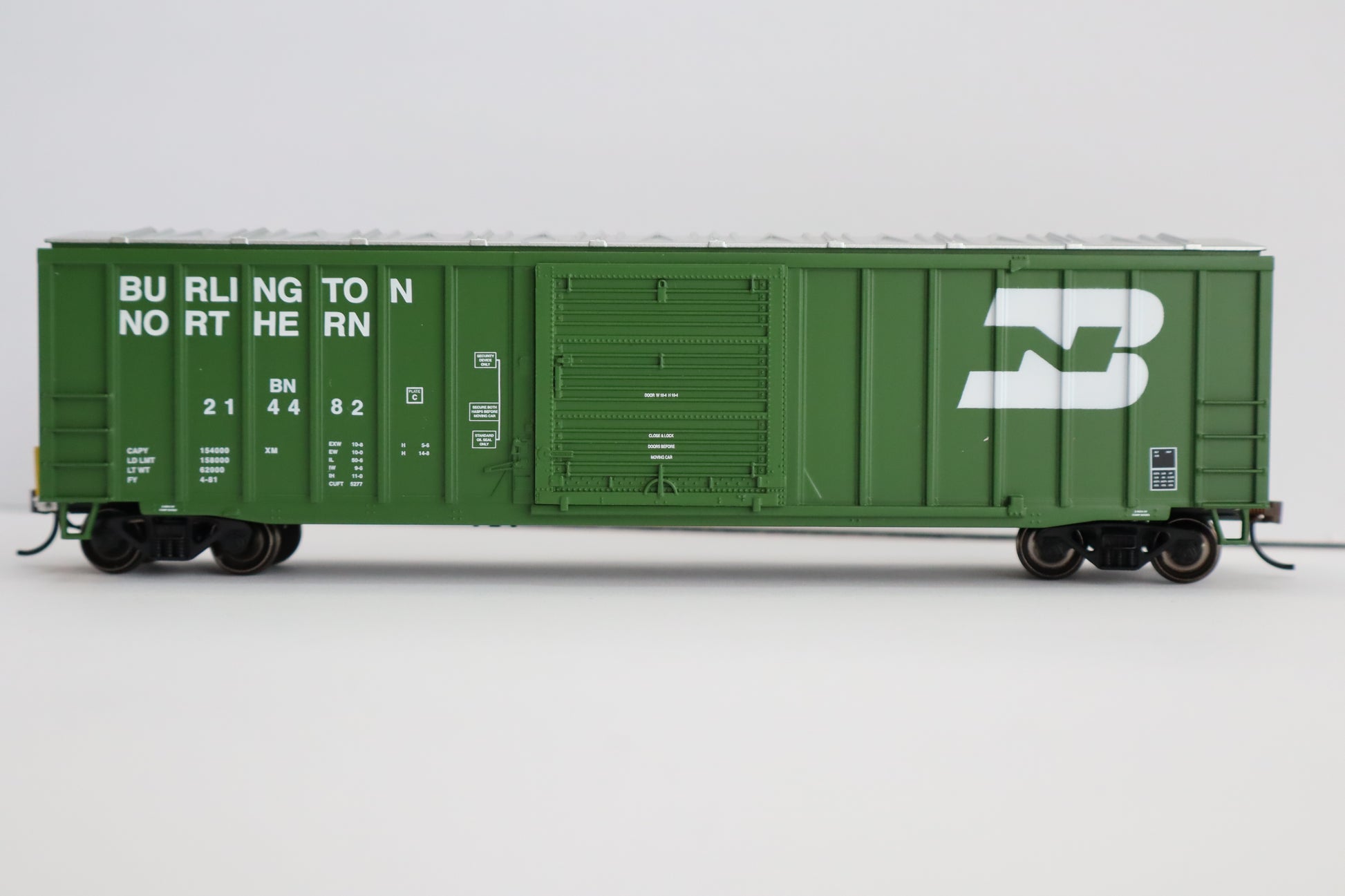 Bachmann HO 14902 - ACF 50'6" Outside-Braced Boxcar w/Flashing End-Of-Train Device "Burlington Northern" #214482 (Cascade Green, White)
