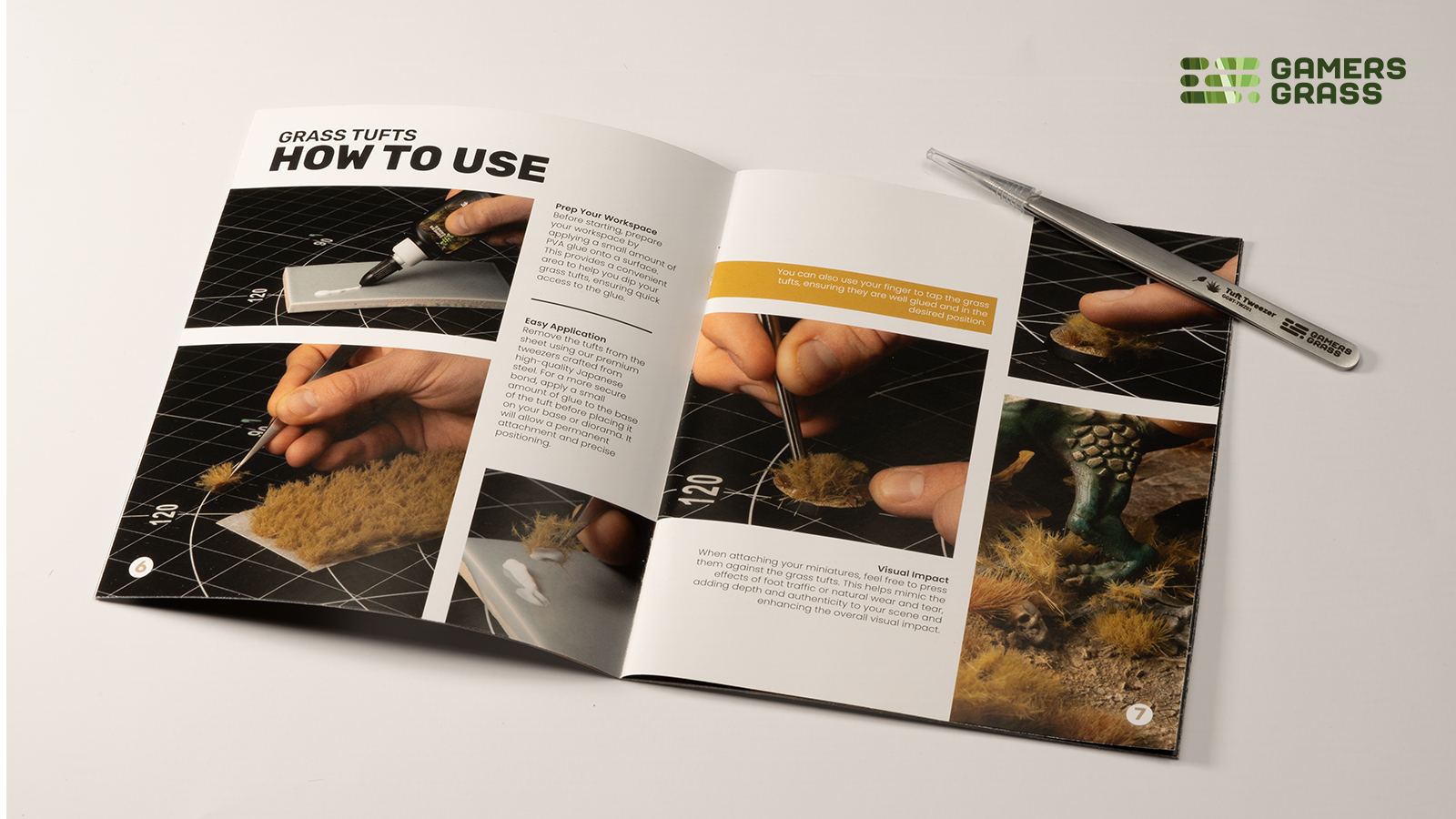 This Starter Box contains 4 full sheets of Grass Tufts, 1 Pair of Tweezers, 1 Bottle of PVA glue and 1 Basing Guide Booklet.