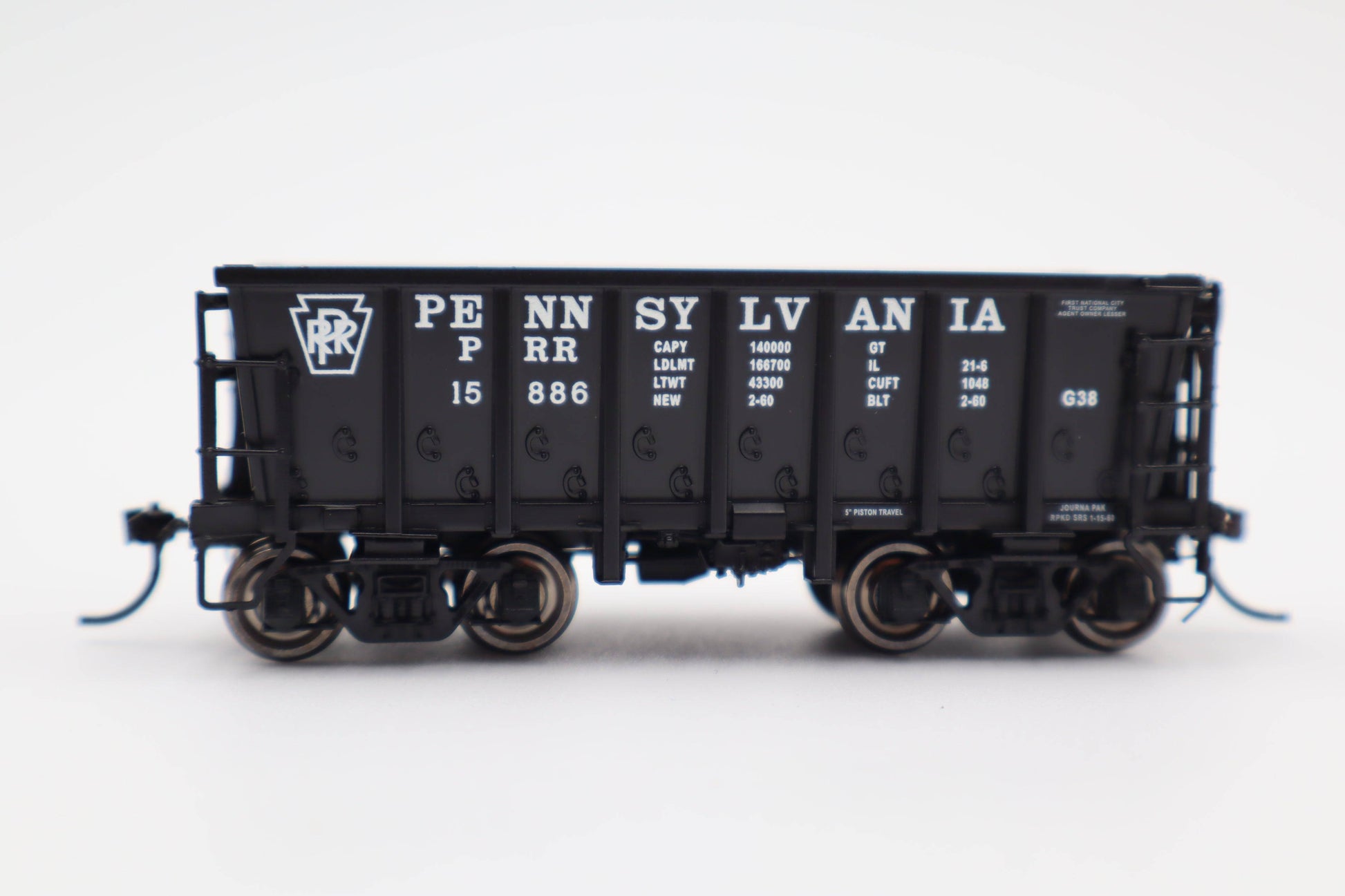 Initially, cars were equipped with older trucks traded in from aging H21A hoppers. Beginning as early as 1963, the Pennsylvania began replacing the aging hand-me-down trucks with newer 77-ton varieties. Cars were reclassified G38B with the change. Since the cars were seldom interchanged, most stayed with friction bearings to the end and PC and Conrail trains wore a mix of colors and lettering designs. Although ore and taconite were by far the most common uses, Conrail did press the jennies into coiled steel service on occassion. One of the last uses was hauling contaminated dirt trains from superfund sites to landfills. Models feature a plastic body and hidden metal weight with separately applied brake system, coupler and safety details. All cars feature metal wheels. Single cars include new operating metal couplers compatable with other brands of HO "scale" knuckles. Knowing you'll be running these in unit trains, our 4 packs feature these operating couplers on one end of two cars with scale, non-operating couplers in between to improve looks and reduce your coupler slack while maintaining operational flexibility. Five numbers for converted G38B cars are also available. For later modelers, we've got Penn Central available in 2 single cars and 4 four packs. These are split between two of the more common lettering variations seen in the Penn Central years. Likewise for Conrail we have 2 oxide red and 1 black variation represented in single and two 4-packs each! Of course there were more varieties than we could possibly capture in one release so we're offering undecorated versions for those who have a special car in mind. Pennsylvania G38 cars will come on PRR 2E-F8 70 ton trucks and G38B and undecorated cars feature later 77 ton trucks. Looking for loads? Our new ore and taconite loads feature one-piece molded loads which are a drop in fit for all of these cars. The loads also include a metal insert so they can be just as easily unloaded with the help of a magnet. Or of course you could pick them up and turn them upside down like the real thing...either way it's a lot less messy! Pennsy, Penn Central, Conrail, steel mill modelers - here is the jennie you've been missing.