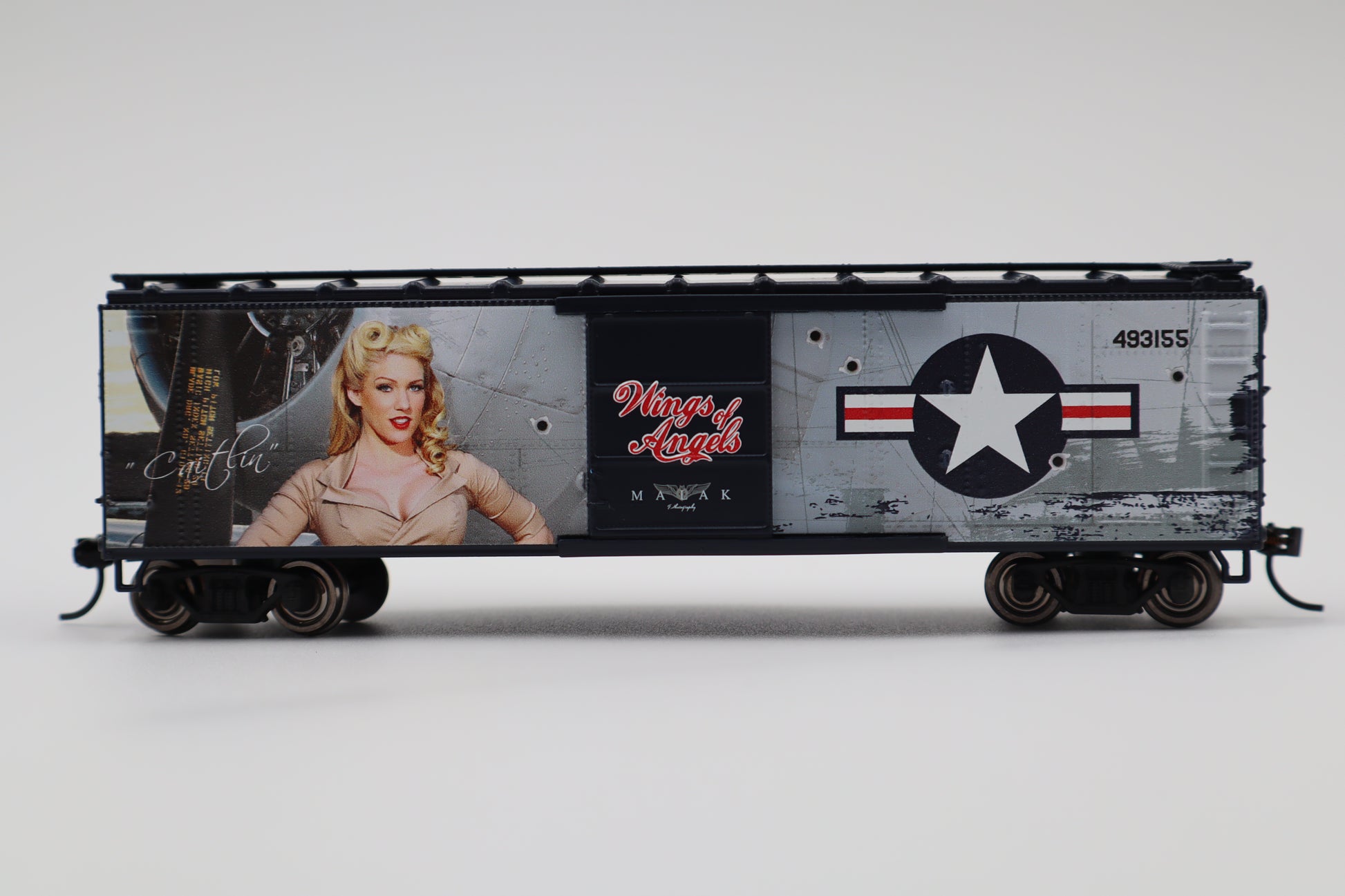 Grow your HO consist with this Wings of Angels Boxcar! Opening doors Metal wheels Metal knuckle couplers Weighted for reliable operation Length: 6.4" Minimum Curve: 18"